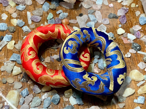 Tibetan Singing Bowl Silk Pillow Cushion Ring / Color Choice Red or Blue / Handmade in Nepal